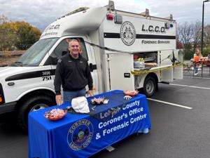 Lehigh County Coroner Daniel Buglio is on duty at the Lehigh County Coroner’s Office and Forensic Center display.