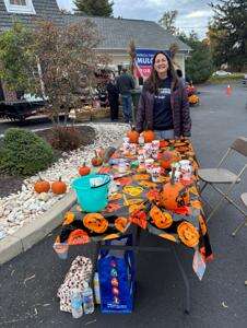 Patricia Mulqueen, a candidate for Lehigh County Common Pleas Judge, who sponsored the pumpkin painting concession at the event, attends the event to introduce herself and meet area residents.