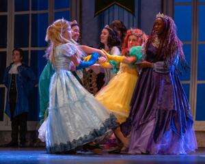 The Princesses played by Clara Biery, Lilly Anderson, Madilyn Perich, Genevieve Crerand, Alyssa Nunez and Elizabeth Doughan compete for Prince Eric’s attention. Zach Furlo is seen in the background during dress rehearsal for the production of “The Little Mermaid JR” Nov. 15.