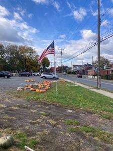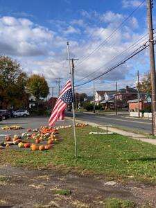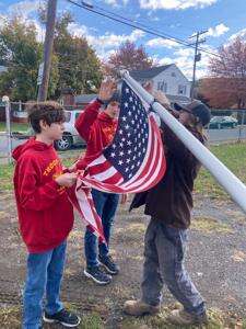 On Nov. 1, Scouts from Troop 146 distributed brown paper bags to residents who wanted to participate in the Scouting for Food campaign. Residents fill the bags with food and Scouts return in one week to pick up the filled bags. Scouts were asked to leave bags on Capital Street in Salisbury Township by a resident. RIGHT: On the drive to Capital Street, members of the Troop notice a flag in need of help. Assistant Scoutmaster Chris Budinetz Sr. told the Scouts if the flag was not repaired by the time they passed by on their return trip, they should stop and fix it.CONTRIBUTED PHOTOS