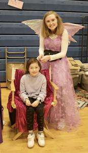 LEFT: Emma Rarich of Fairy Hair of the Valley adds a dash of sparkle and shimmer to the hair of Sydney Muessig during the SES Craft & Vendor Fair.PRESS PHOTOS BY KATHY HASSICK