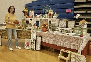 Tammy Stephens displays her farmhouse style upcycled offerings which she cleverly creates by repurposing ordinary household items.