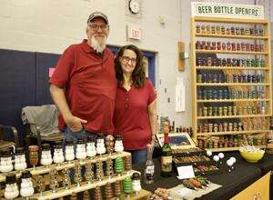 Mike and Martie Telepo from Telepo’s Woodcrafts display a vast array of bottle openers and wine stoppers expertly turned on a lathe in an assortment of colors and shapes during the SES Craft & Vendor Fair held Nov. 8 at Salisbury High School.