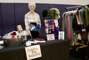 Press Photo by Kathy HassickThe Salisbury Elementary School PTO hosted a craft and vendor fair Nov. 8 at Salisbury High School. ABOVE: Sandy Kuder brings her colorful handiwork in the form of hats, scarves, shawls and dish towels. Additional photos appear on Page A2.