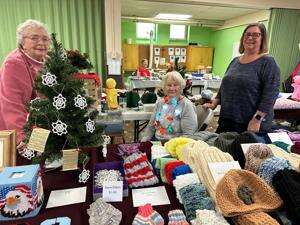 Elaine Rich, Cathy Person, Eileen Miller and Carlene Moyer, rear, sell a variety of crafts at the fall bazaar Nov. 8.