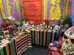 Muhlenberg College’s Spanish program and Ettinger Hall, 2400 Chew St., Allentown, hosts a Día de los Muertos altar Nov. 1-4, inviting visitors to honor loved ones with flowers, food and photos. The marigold’s bright petals and scent are said to guide spirits home.PRESS PHOTO BY MICHAEL HIRSCH