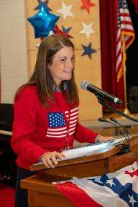 Veterans Memorial Elementary School Principal Karen Dopera is the master of ceremonies for the Veterans Day program.