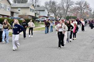 Marching practice for the Philadelphia Thanksgiving Day parade takes the Chargers through a nearby East Hills neighborhood.