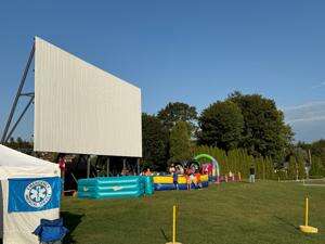 Inflatables and other activities are available for families while they wait for the movie to start.