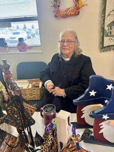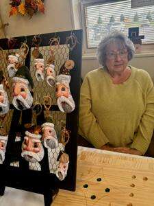 Mary Ann Innamorato displays her homemade seasonal items at the Church of the Good Shepherd basket raffle event.