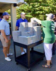 Ai Orthodontics volunteer Karen Hobson distributes a hearty lunch to hungry golfers. Lunch was provided by Ai Orthodontics and Rotarian Roger Whitcomb.