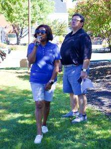 Rotary Club President Nelly Kabiru and chairperson Rich Zayaitz welcome golfers to the tournament.