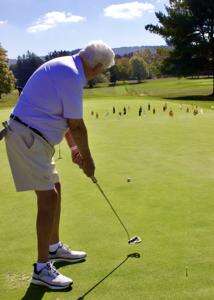 Press Photos by Kathy HassickThe Emmaus Rotary Club held a golf tournament at the Brookside Country Club, Lower Macungie Township, to raise funds for the East Penn Food Coalition recently. ABOVE: Jerry Noll putts for a good cause and chance to take home an adult beverage to enjoy after tournament play.