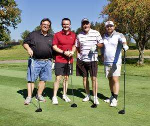 Rick Zayaitz, Kurt Cannon, Phil Heberling and Kyle McFarland gather for a photo before they tee off.