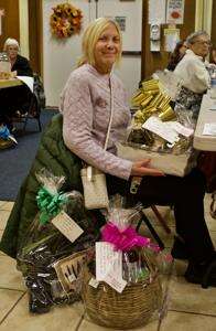 Lady Luck is good to Dorothy Keeler as she wins several baskets during the Jerusalem Evangelical Lutheran Church of Eastern Salisbury basket social Nov. 7.