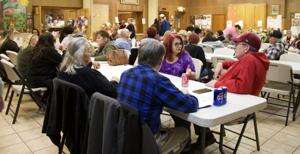Press Photos by Kathy HassickABOVE: A large crowd gathers at Jerusalem Evangelical Lutheran Church of Eastern Salisbury for a basket social Nov. 7. A variety of themed and specialty baskets as well as gift cards were available for visitors to bid on. All proceeds from the event benefit the church.