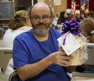 Ryan Schaffer wins a ceramic candle holder at the basket social.