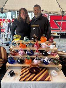 Jennifer and Scott Capparell display blown glass creations by Joseph Capparrell, Scott’s brother. Joseph has been doing this craft for 10 years. He also teaches at the Banana Factory Arts Center, Bethlehem.