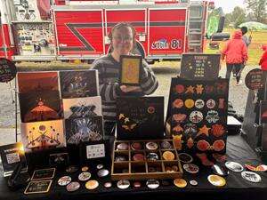 Kylee Tirado creates nature photos and abstract art. Tirado stands with a display of work.