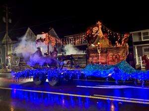 Skeletons astride motorcycles, pirates sailing along Route 100 and more were among the highlights of the annual Macungie Halloween Parade recently. ABOVE: Lawn care and landscaping company TurfPro flies its flag above a windjammer haunted by pirates during the Macungie Halloween parade.