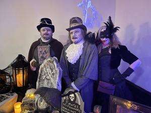 The mansion itself — built in the late 19th century by industrialist George Dery — provided a stunning backdrop for the festivities. Event decor was designed by film set artist Grace Jeffery, of Artistic Trolley Productions, transforming the landmark into a cinematic stage. Visitors were treated to live demonstrations by Bethany “Bethica” Carlisle, who created movie-quality special effects makeup and American Hairlines, who showcased “horror hair” styling straight from the set of a thriller.