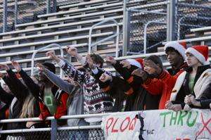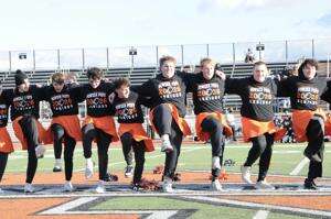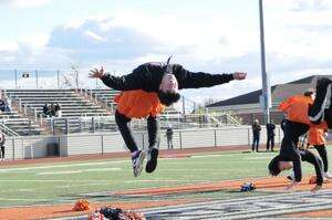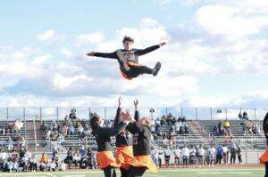 PRESS PHOTOS BY ALAN ZUZICA cheerleader is tossed in the air during the Powder Puff game between Northampton Area High School and Catasauqua High School, held Nov. 16 at NAHS. The game ended in the 34-34 tie.