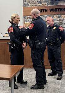 At the Nov. 19 meeting of the South Whitehall Township Board of Commissioners, the township had the honor of formally recognizing three newly hired police officers during a ceremonial badge pinning.