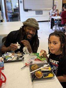 Family members joined the students in the gymnasium and proceeded into the cafeteria for their meal. Both students and family members shared a meal — but more importantly, they shared time together during this busy season.