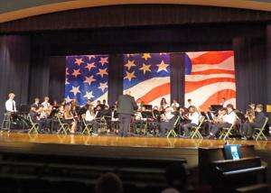 The seventh and eighth grade band provides music for the program honoring veterans at Lower Macungie Middle School.