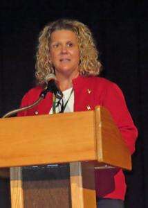 PRESS PHOTOS BY C. RICHARD CHARTRANDLEFT: Lower Macungie Middle School Principal Sallie Yencho welcomes all to the program.