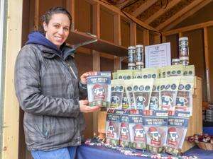 Ashley, an event representative with Saint Rocco’s Treats, displays some of their meat-based dog treats available in flavors like cheeseburger and salmon. This year marks the first time Saint Rocco’s Treats, based in Pipersville, Bucks County, is participating in Christmas City Village, and Ashley said it was a good experience. “We use all human grade ingredients,” Ashley said, noting the soft strips are great for training. Flavors include turkey and cranberry, as well as sweet potato.