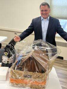 The Women of the Church led the congregation in thanking the pastor at a lunch after the Oct. 12 service where they presented him with a basket packed with his favorite snacks, along with a birdhouse and birdseed to indulge his favorite pastime.