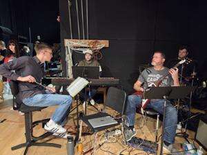 Middle school music teacher Reid Clymer is the music director and conducts the band.