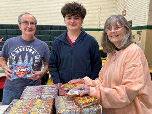Members of Boy Scouts Troop 80 and Knights of Columbus assisted with loading the items into the school’s gymnasium.