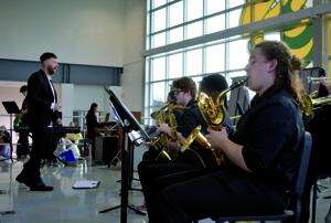 Led by music teacher Spencer Koppenol at left, the EHS jazz band provides a soundtrack for guests to enjoy along with their lunch.