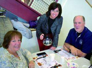 RIGHT: At center, East Penn School District Superintendent Dr. Kristen Campbell offers coffee refills for Lower Macungie Township residents Kathy and John Schadler. Story and additional photos appear on Page A2.
