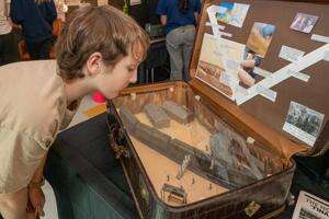 LEFT: Eddie Godfray views a model depicting Jews arriving at the Auschwitz concentration camp during World War II at the Legacy Exhibit.