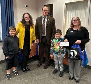 PHOTO COURTESY OF SHARON HARRINGKeegan Kushnir, Andrea Kushnir, vice president, Leo’s League Pediatric Cancer Fund, Kevin A. Schmidt, president and chief executive officer, The Neffs National Bank, Leo Kushnir (representing all children fighting pediatric cancer) and Irene Emenheiser, community development officer, The Neffs National Bank are photographed at a recent check donation presentation at the bank.
