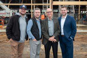 PRESS PHOTOS BY LOU WHEELANDMembers of the Jaindl Family of Companies, Josh Jaindl, Adam Jaindl, David Jaindl and Luke Jaindl, attend the topping off ceremony Nov. 20 at the new Upper Macungie Township Community Lifestyle Center, 360 Grange Road.