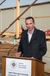 David Jaindl, president and chief executive officer, the Jaindl Family of Companies, expresses his support for the new Upper Macungie Township Community Center during the topping off ceremony.