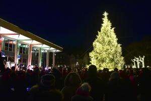 Despite a winter chill made harsher by windy gusts, Payrow Plaza filled with hundreds of Bethlehem and Lehigh Valley area residents Nov. 28 to formally celebrate the advent of Christmas in the Christmas City with the lighting of the community Christmas tree and holiday lights throughout the city. This year’s tree was provided by the Simoes family of Bethlehem.