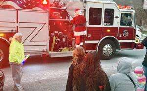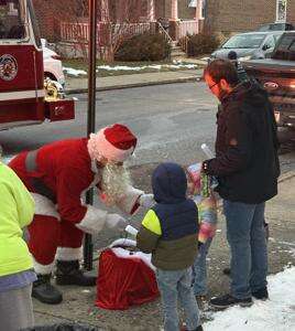 Santa Claus rolled in, sitting on the top of a Coplay Fire Department truck. He delighted the kids present as he climbed down off the truck and greeted the young ones with gifts from his bag.