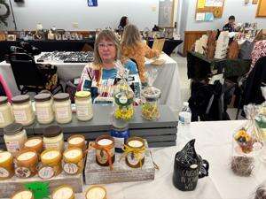 ABOVE: Cheryl Lanteigne, of Quakertown, shows handcrafted candles from Austin Aroma Candle & Co.