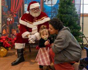 A story of reluctance. Aisla Sperlbaum, Allentown, does not want anything to do with the man in the red suit during the pancake breakfast and visit with Santa. Mom Ariyanna was doing her best!