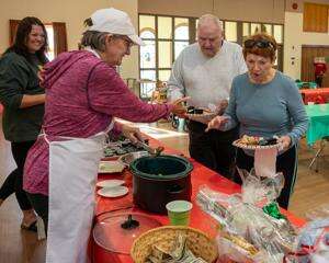 Grey and Judy Berriery, of Upper Macungie, are served breakfast by Linda Lenhart at the pancake breakfast and visit with Santa. Michele Doxtater is seen in the background.