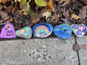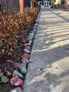 In honor of Kindness Week Nov. 10-14, the Salisbury Elementary School PTO and art teacher Catherine Amorin work together to make a kindness caterpillar. Students painted the stones in art class and then the PTO placed them along the walkway to the school to make a caterpillar.