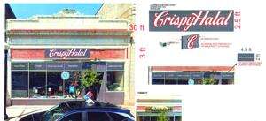 Mohammad Aziz, assisted by Scott Marlin from D Signs & Awnings won approval for installing LED illuminated backlit channel letters spelling out “Crispy Halal” for 25 E. Third St. Measuring 30 inches tall by 144 inches wide, the sign is centered horizontally and vertically on a rigid aluminum backer within the existing sign band. Screwed into existing mortar joints, the backer and tube framing are to be painted “peppercorn” dark gray.