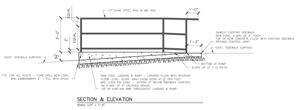 The overall ramp dimensions are approximately 114 inches wide by 72 inches deep with the steel railing installed directly into new concrete. The railing and ramp are to remain independent of the existing structure.