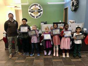 Sheckler Elementary School Principal Dr. Robert Kucharczuk introduced the December Students of the Month — Angela Domche, Tessa Bright, Sophia Keller, Mila Palus, Ashton Murphy and Zaiden Diaz.