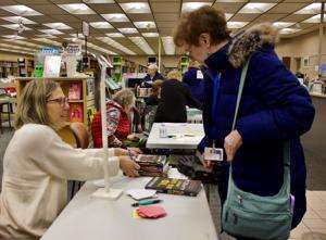 Library volunteer Karin Capri assists Marlene Heller with her book purchases during the annual Friends of the Emmaus Public Library Holiday Book Sale at the Emmaus Public Library Dec. 5.